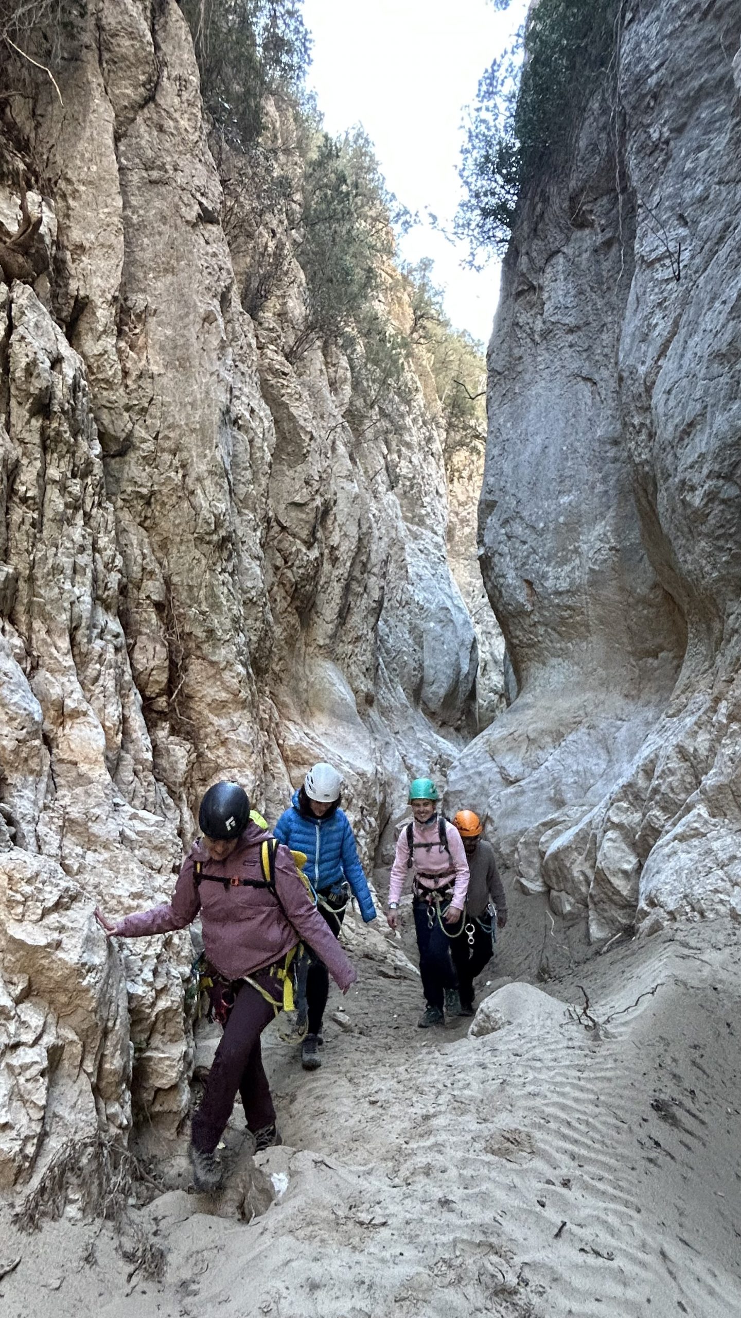 Una vez dentro del barranco, seguiremos su curso mediante varios rápeles más cortos donde puliremos nuestras destrezas, y constantes destrepes, para ir descubriendo preciosos paisajes y rincones.