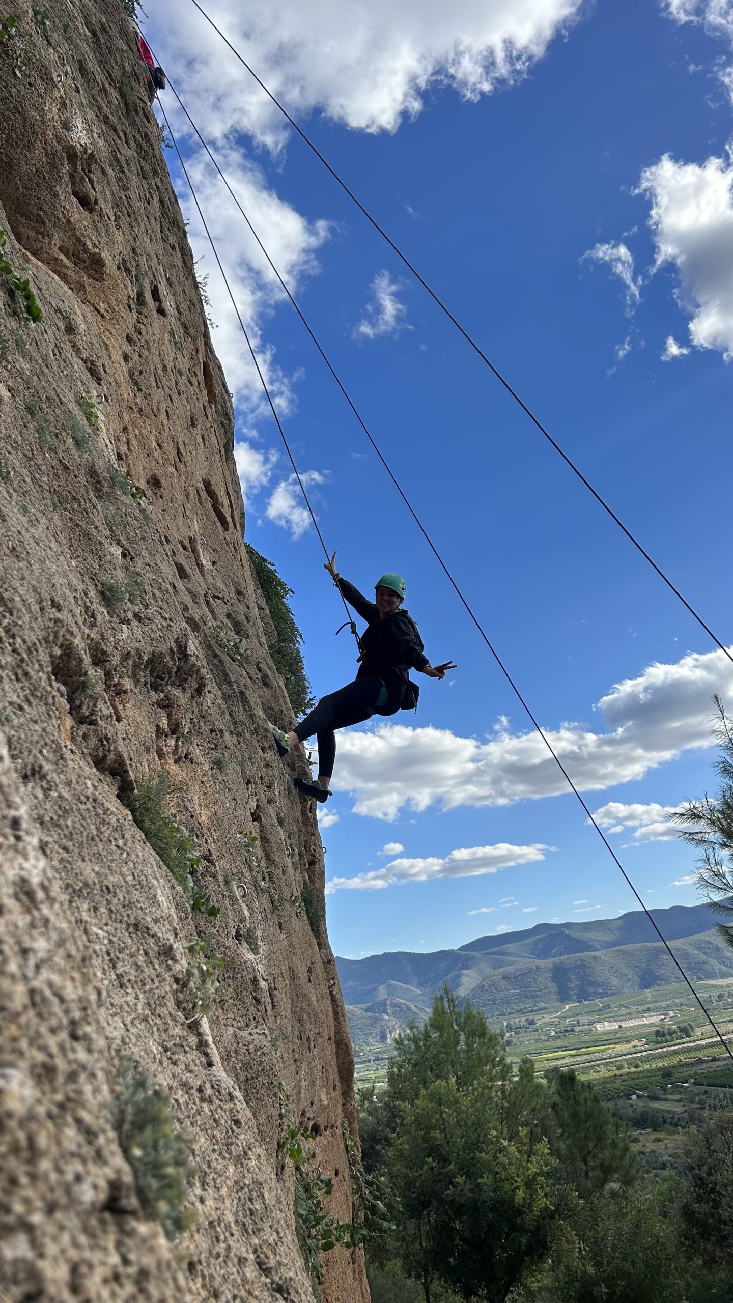 Tras repartir el material y una aproximación a pie, llegaremos a las vías adecuadas para iniciarse. Vuestro guía montará las cuerdas según la técnica conocida como «top rope» para que podáis subir con la tranquilidad de una cuerda «protegiéndoos» desde arriba.