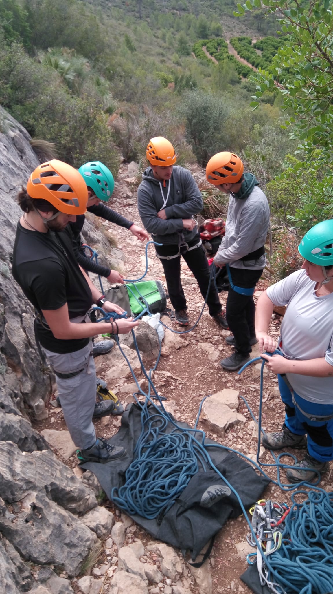 Tras repartir el material y una aproximación a pie, llegaremos a las vías adecuadas para iniciarse. Vuestro guía montará las cuerdas según la técnica conocida como «top rope» para que podáis subir con la tranquilidad de una cuerda «protegiéndoos» desde arriba.