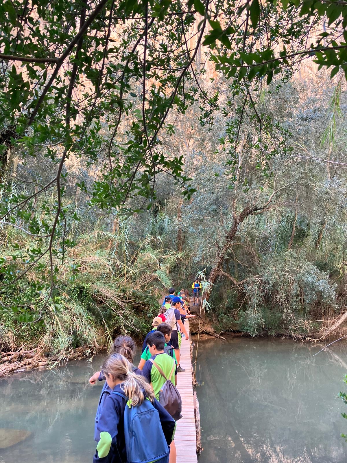 Tras cruzar este puente, seguiremos bajando escaleras hasta llegar a la misma altura del río, donde en verano es posible bañarse (con poca profundidad). Poco después, volveremos a cruzar por un segundo puente colgante, éste de escasa altura, para proseguir por la margen izquierda de nuevo, en un paseo fácil rodeado de espectaculares paredes y de la exhuberante vegetación típica de ribera, hasta llegar a un punto donde se abre el cañón.