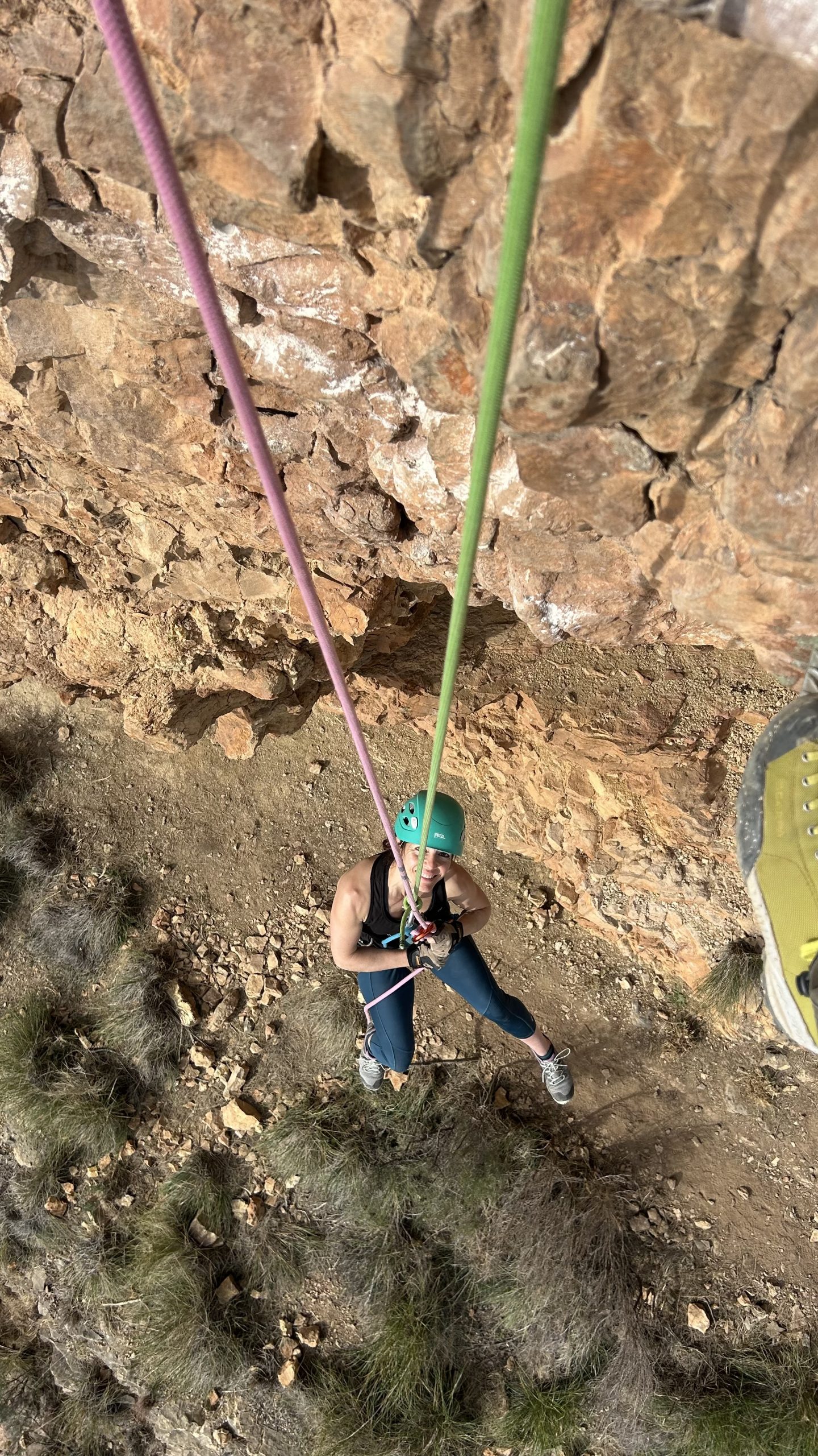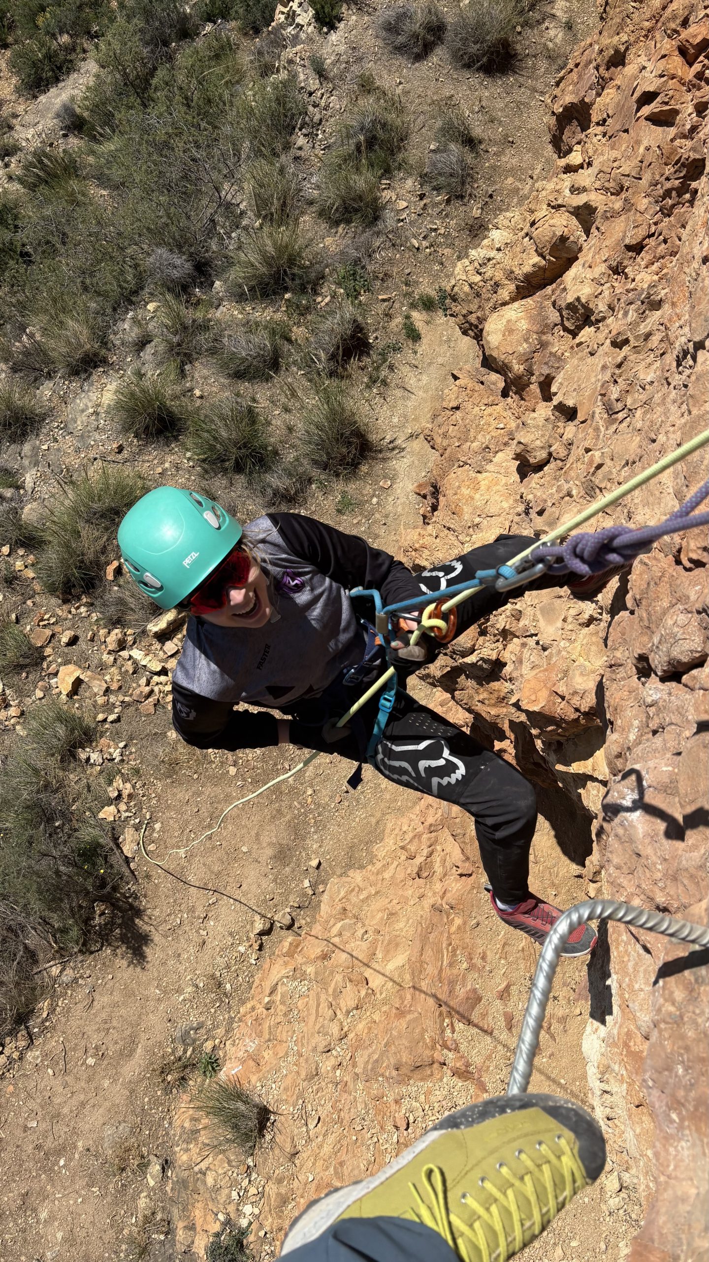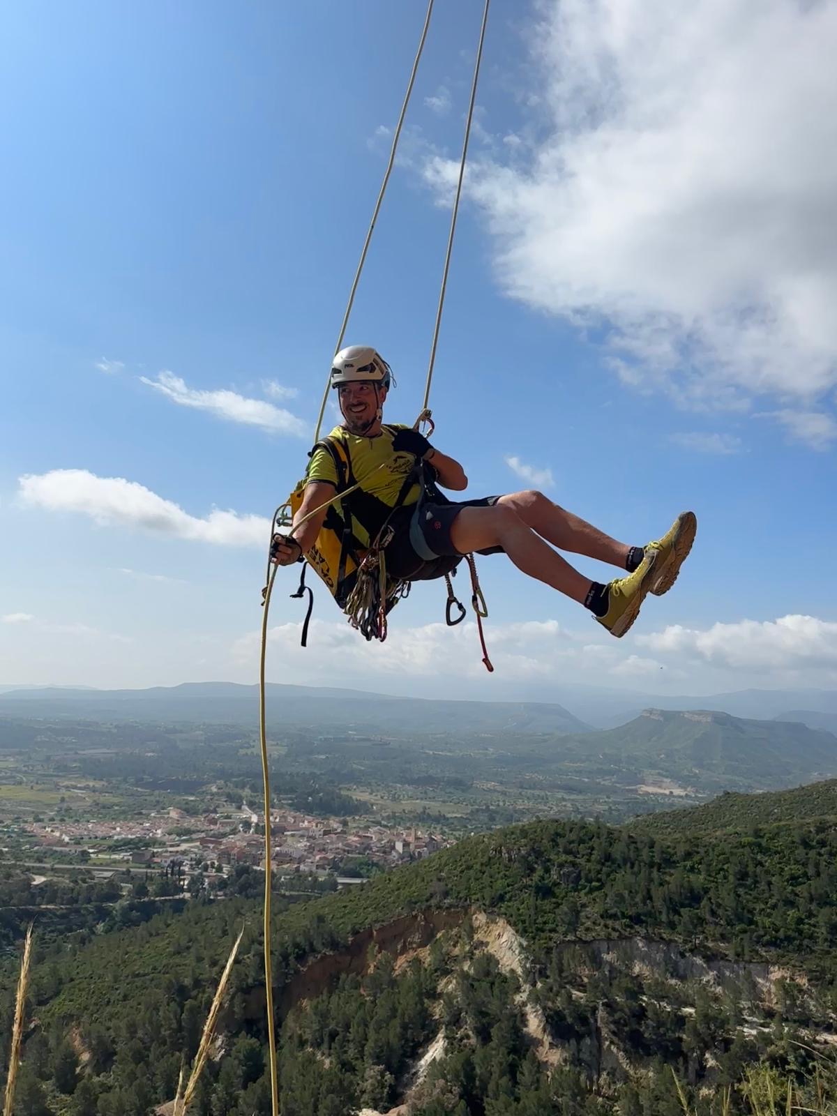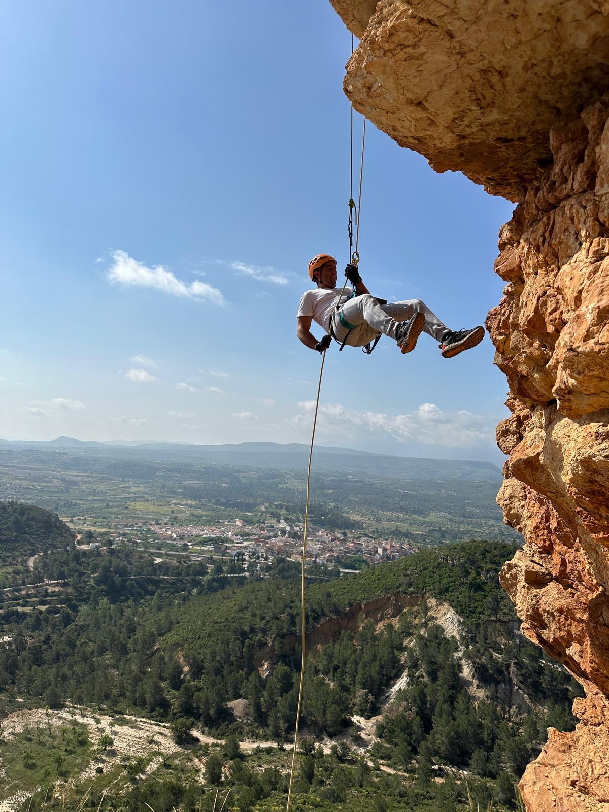 El descenso se hace mediante un espectacular rápel volado y el retorno por la misma senda que subimos.