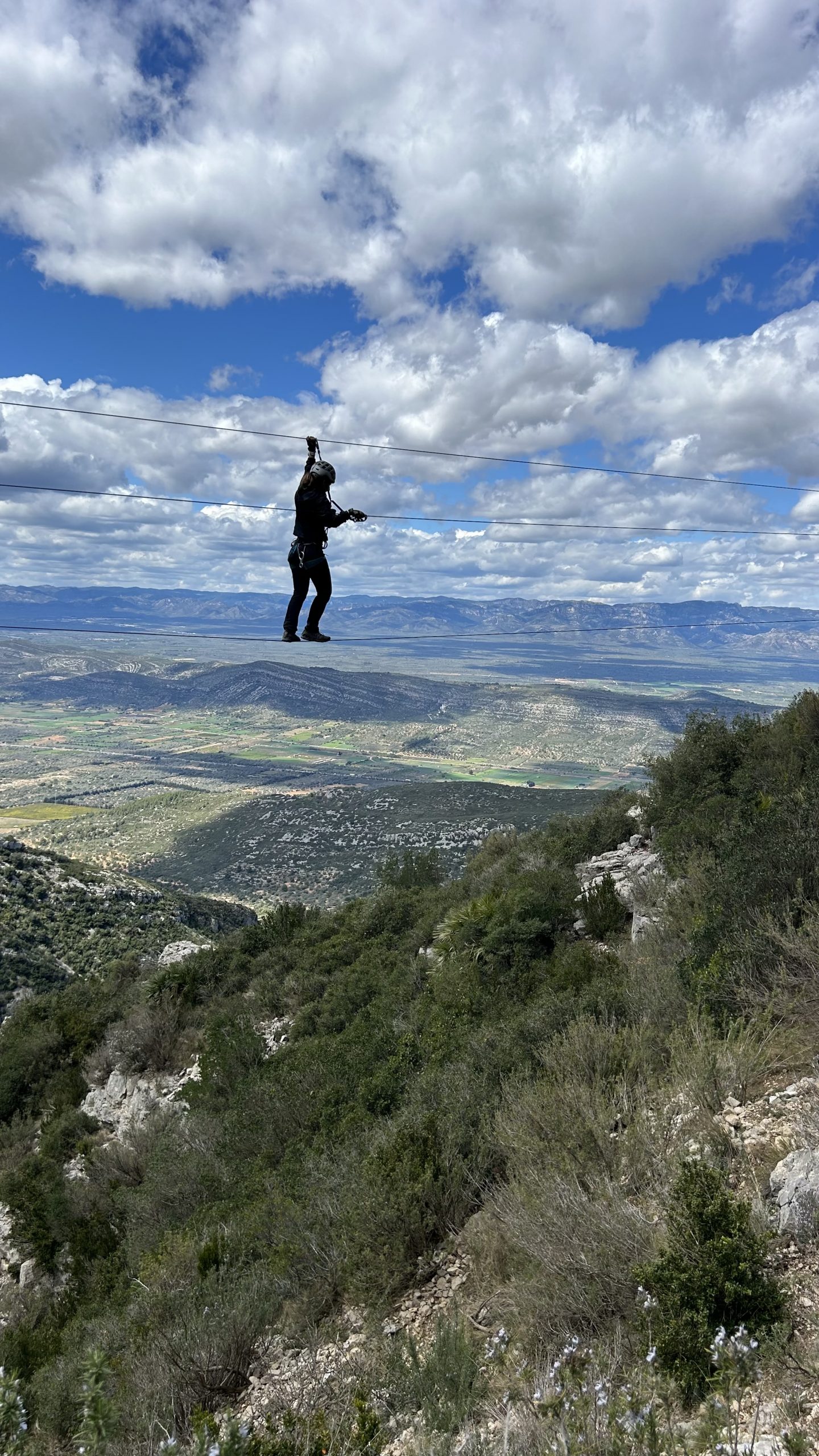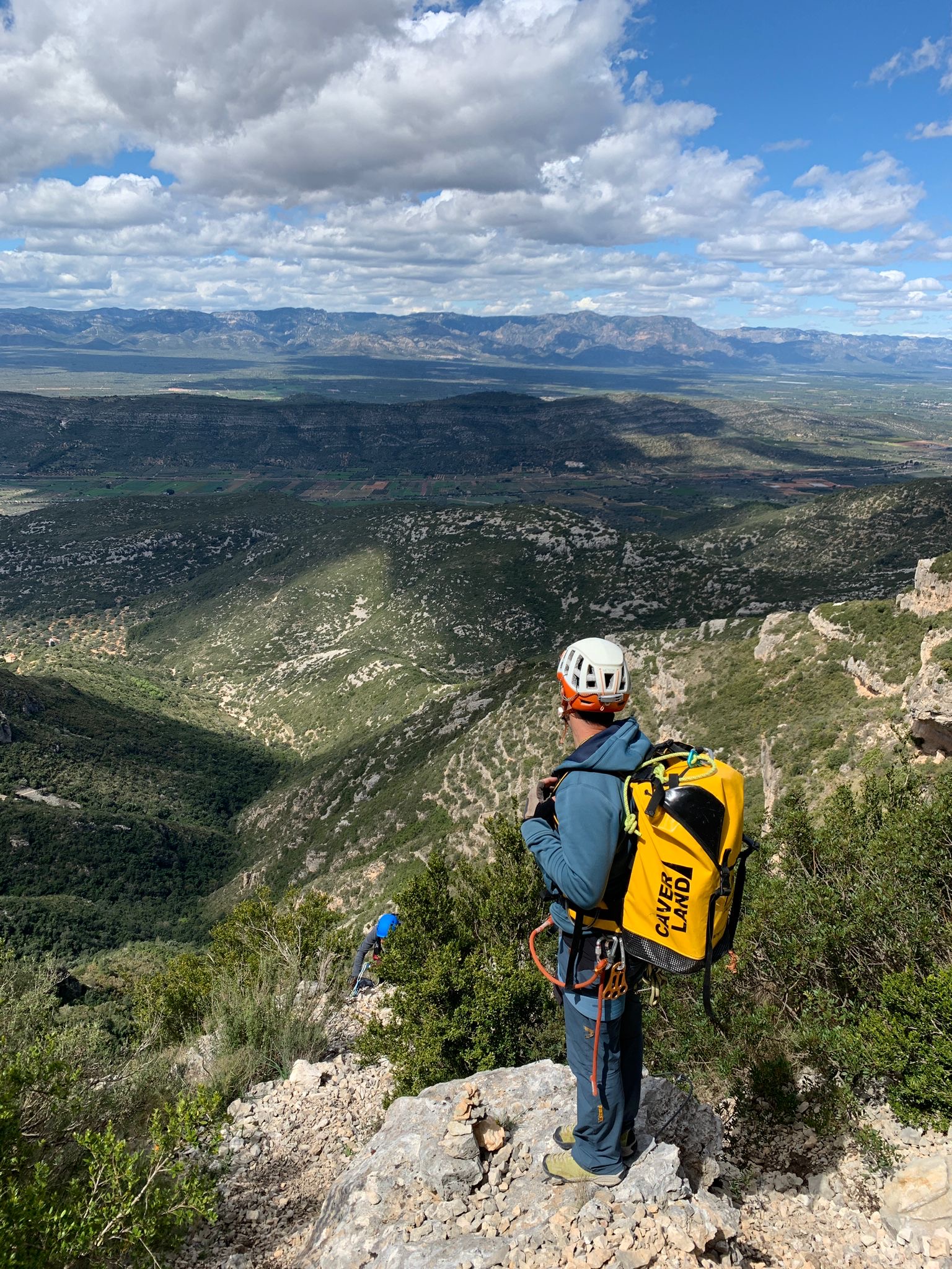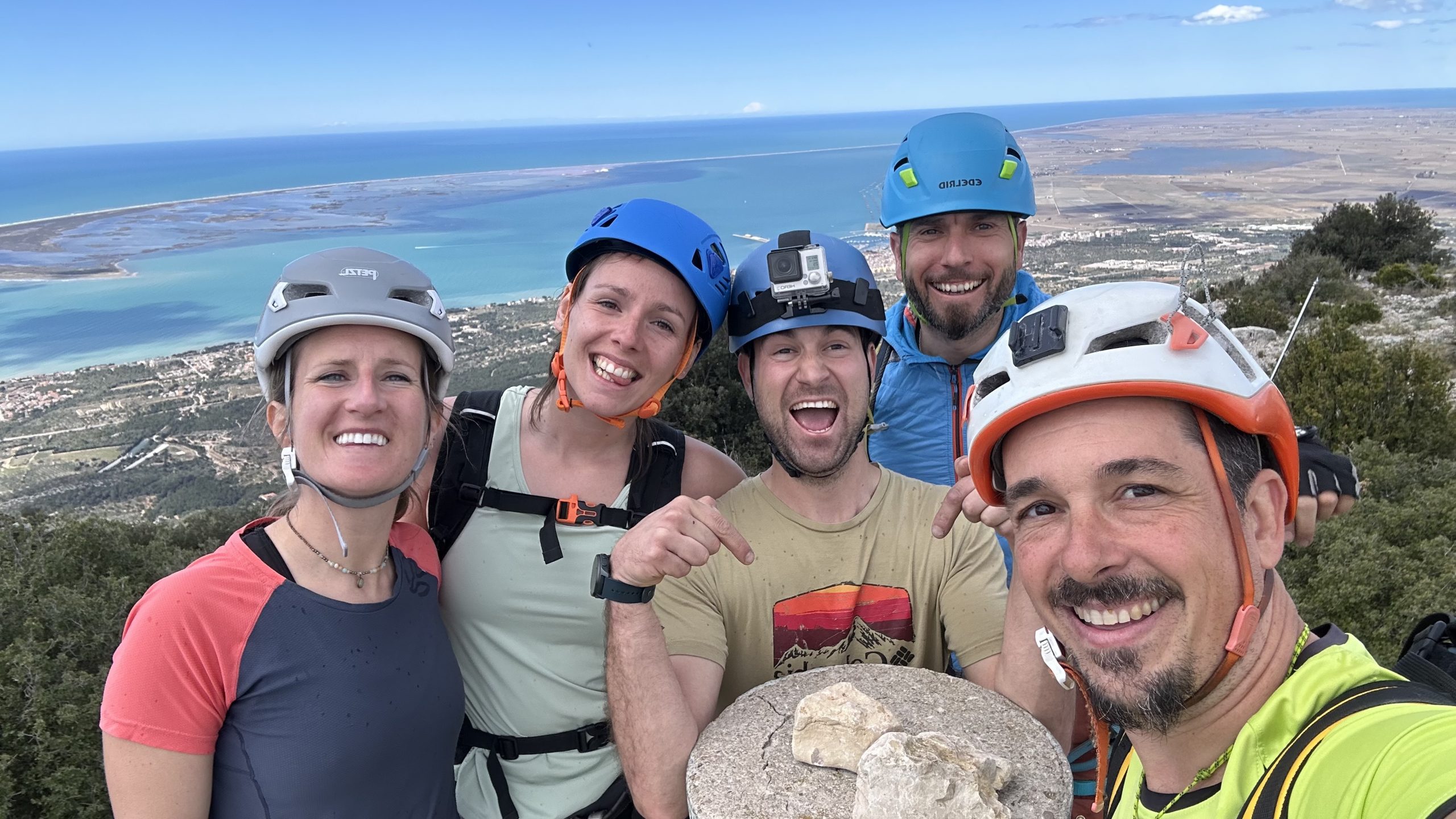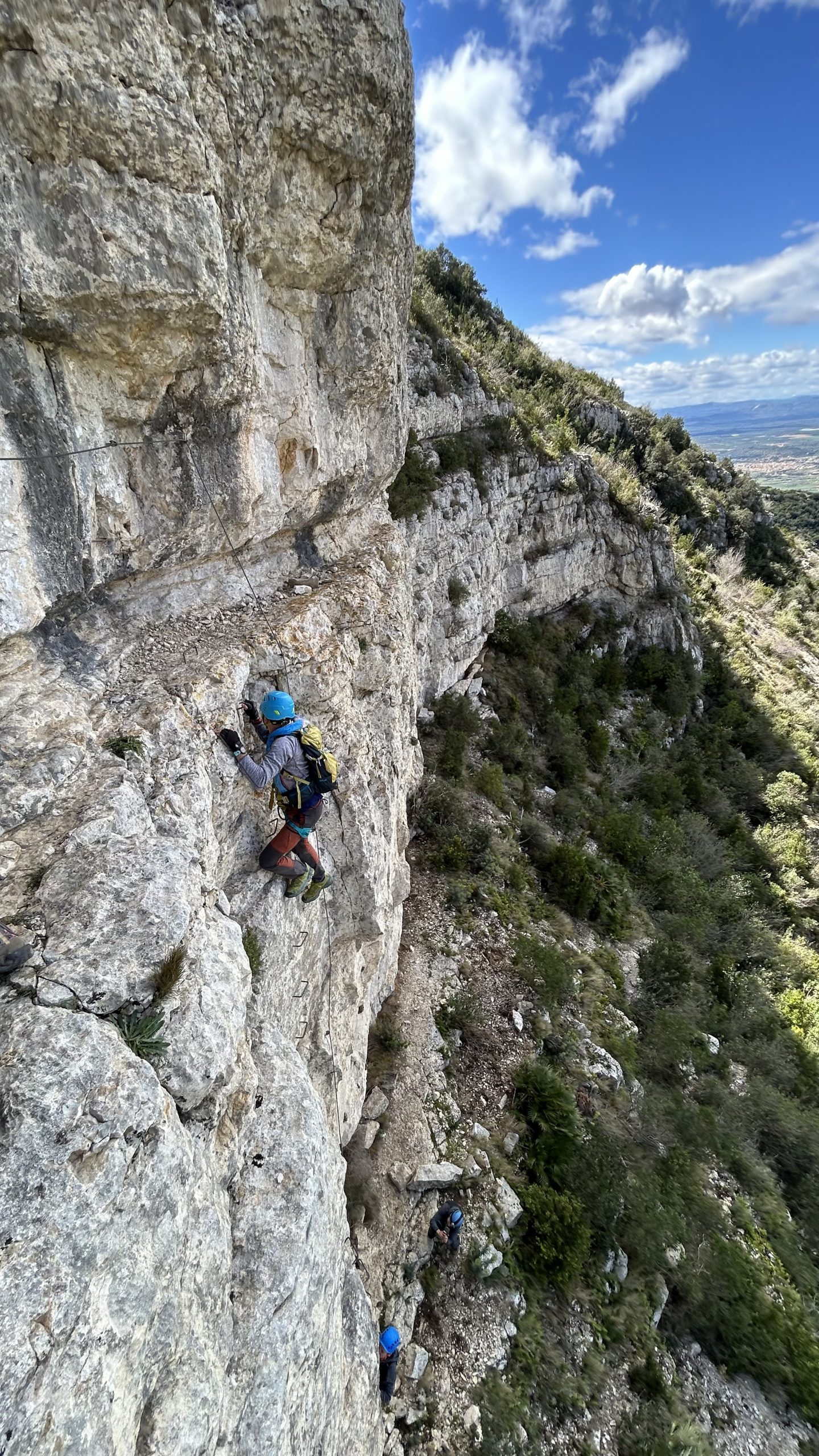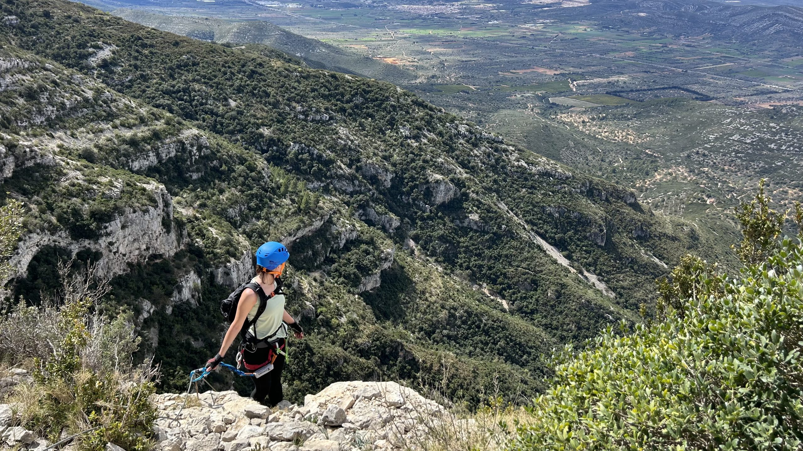 Una ferrata larga y bonita, en la que encontraremos un puente nepalí muy fotogénico, un rápel, varios desplomes... y que nos regala una llegada a la cima con espectaculares vistas del delta del Ebro.